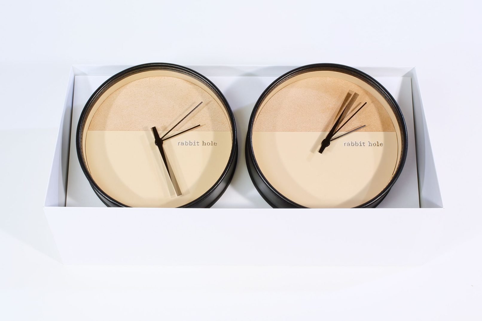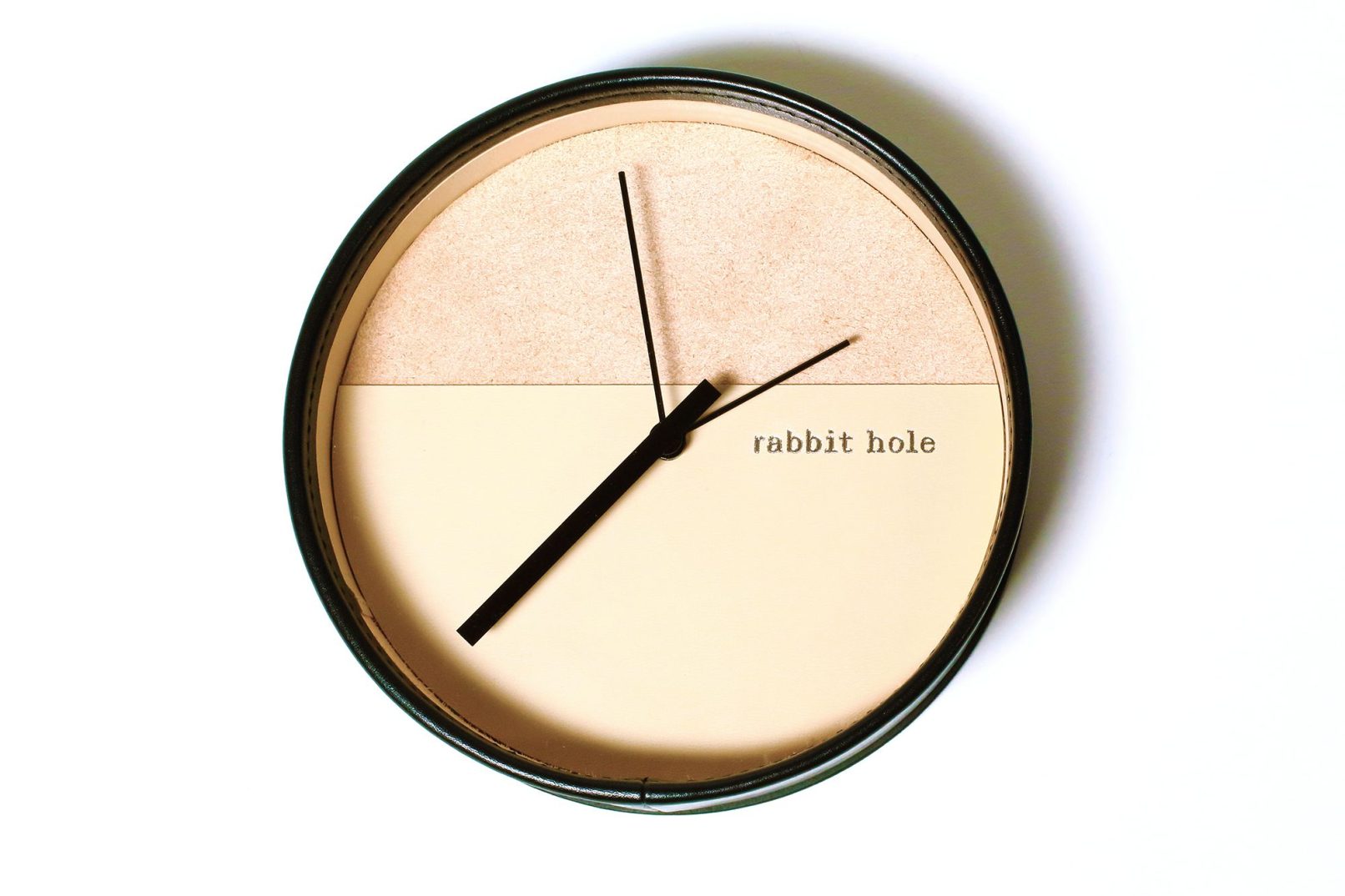 通り過ぎる時間の足音をイメージして、一足の靴をモチーフにデザインした時計。 デザイン・プロジェクトrabbit holeのセカンドコレクション。 – rabbit holeは、デザイナーの一野篤。木工・家具デザイナーの竹内秀典。写真家 / グラフィック・デザイナーの大西正一によって開始されたデザイン・プロジェクトです。 身体の延長線上にあるプロダクト、身体を通して想像力を刺激するプロダクトの在り方を模索しています。